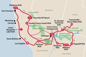 Se ruteforslagetDet vestlige USA i autocamper